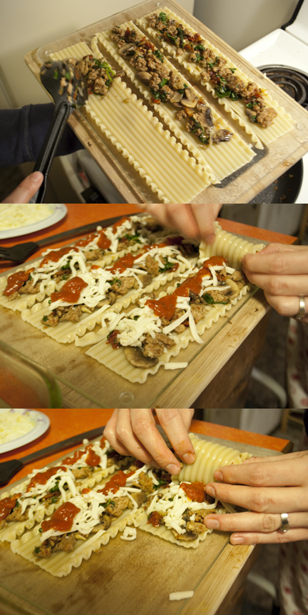 Sausage, Spinach and Mushroom Lasagna Rolls
